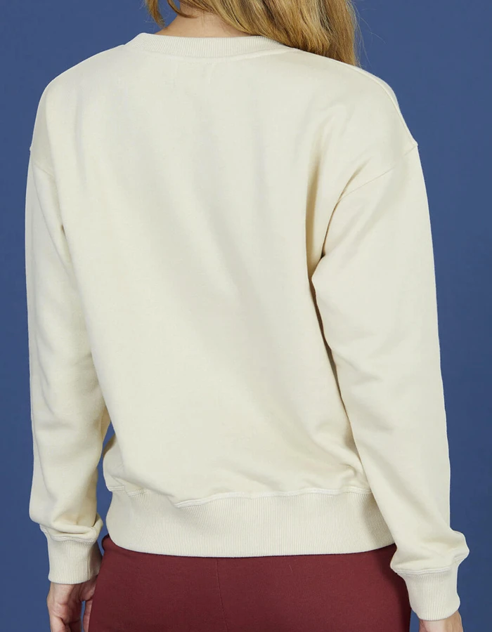 Beige sweatshirt in light brushed fleece with contrast-panelled insets and logo embroidered on the chest. Ribbed collar, cuffs and hem. Designed for a slightly cropped fit.
