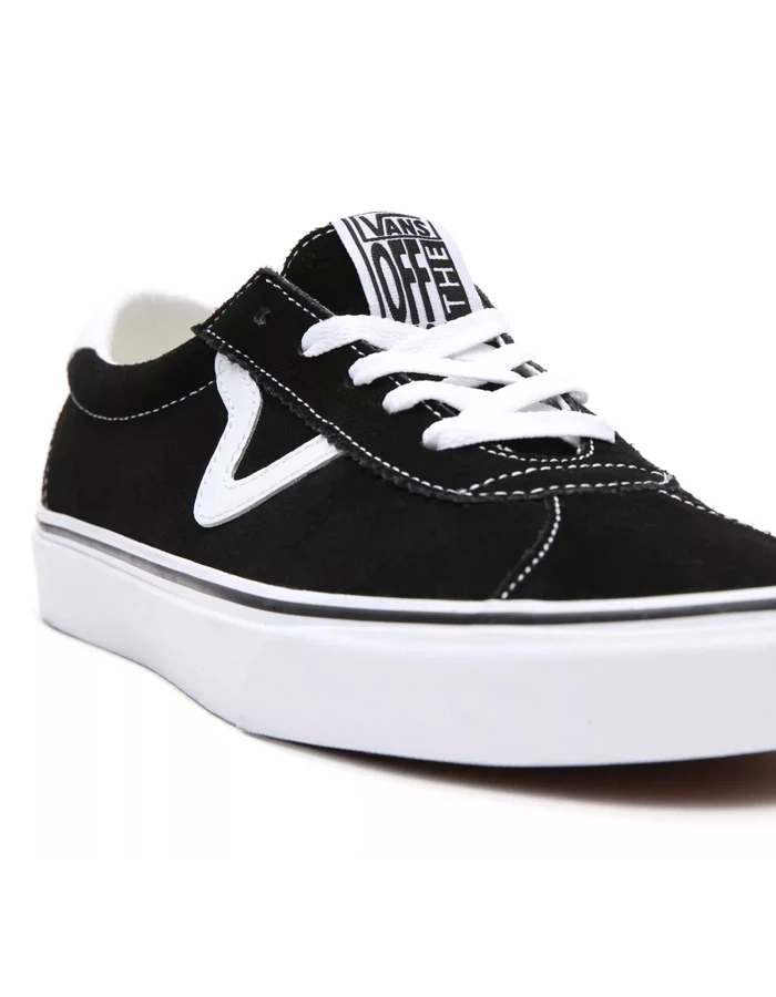 The Suede Vans Sport is a retro lace-up style featuring sturdy suede uppers with leather accents, old school V sidestripes, padded collars, and signature rubber waffle outsoles.